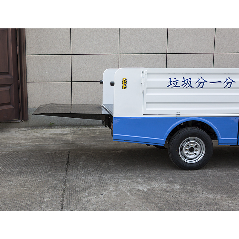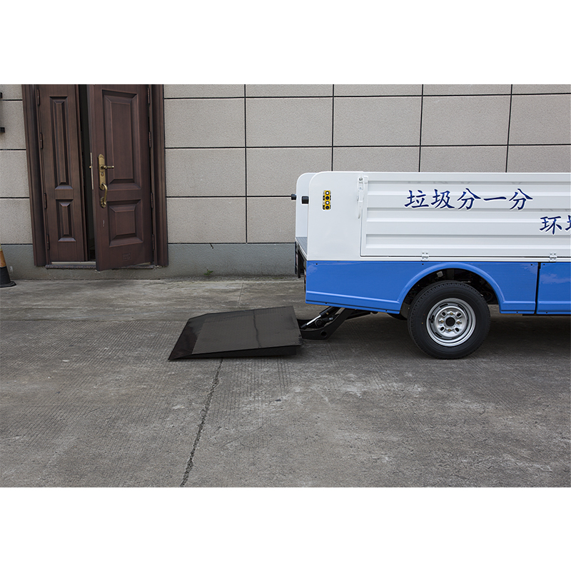 液压尾板采用两个单作用油缸控制尾板平衡升降,保证垃圾桶平稳,操作方便简单快捷;
